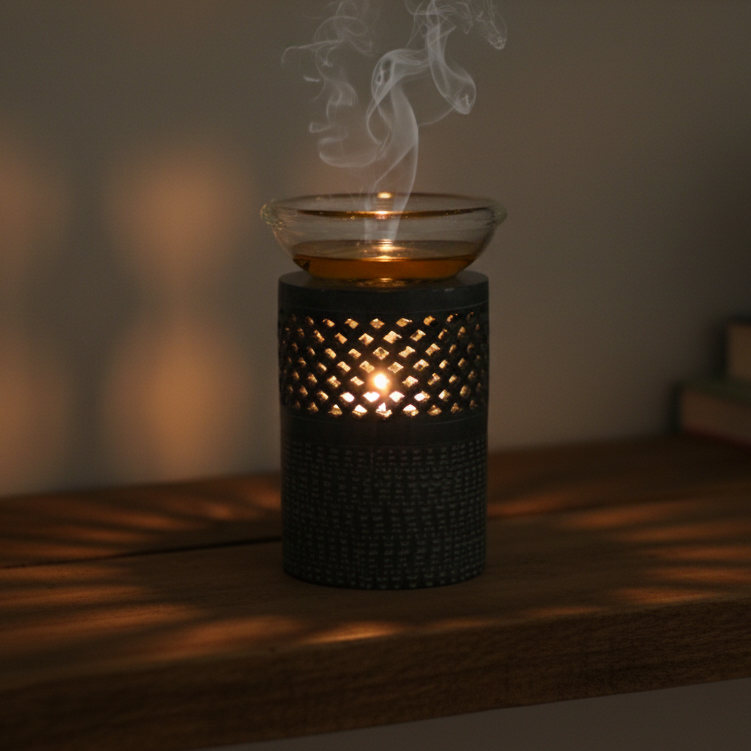 Material: Crafted entirely from rich Palewa stone, known for its superior thermal properties and durability. The dense stone safely holds the heat of the tea light while its dark hue beautifully contrasts with the warm, escaping glow.